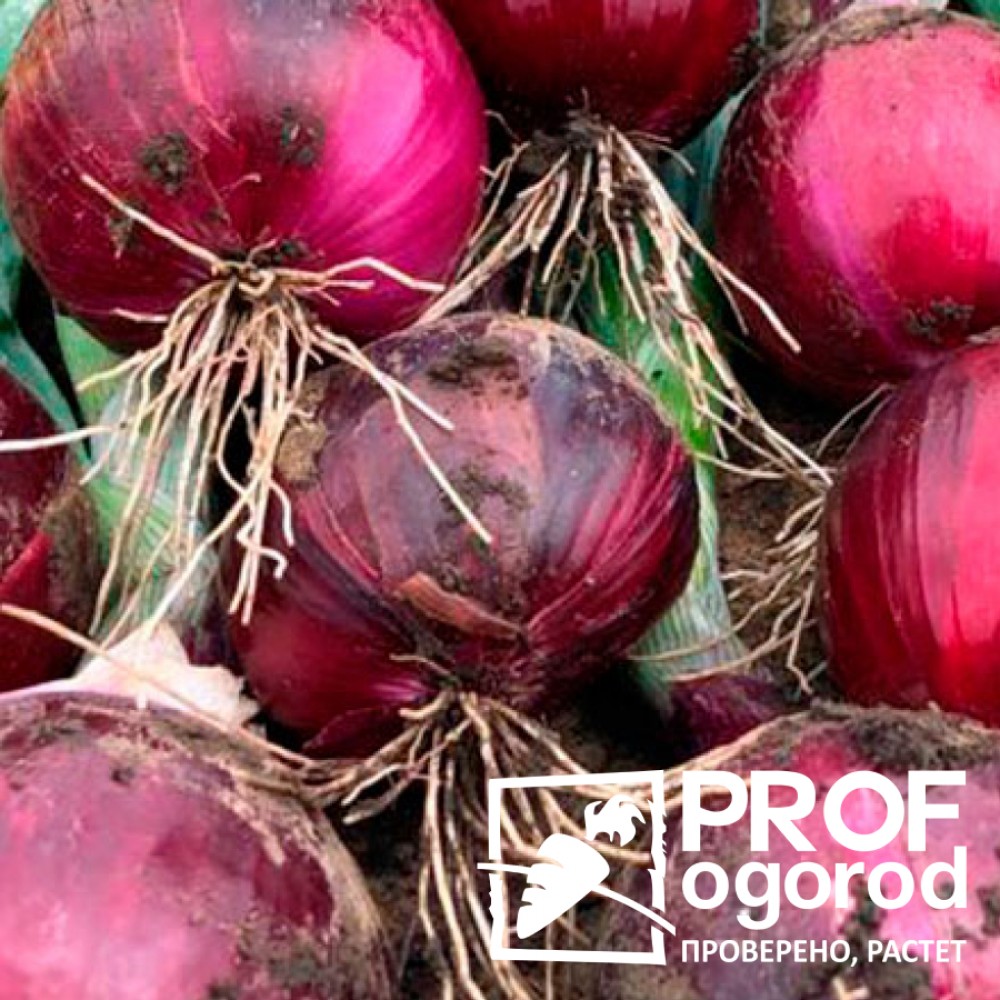 Рубиллион F1 — это гибрид красного лука с ранним сроком созревания. Цвет внешней части сочных чешуй красный. Форма луковицы круглая. Вкус плодов мягкий сладковатый. Толщина шейки небольшая. Верхние плотно прилегающие чешуйки красно-фиолетового цвета. Размер плодов достигает 7 см.